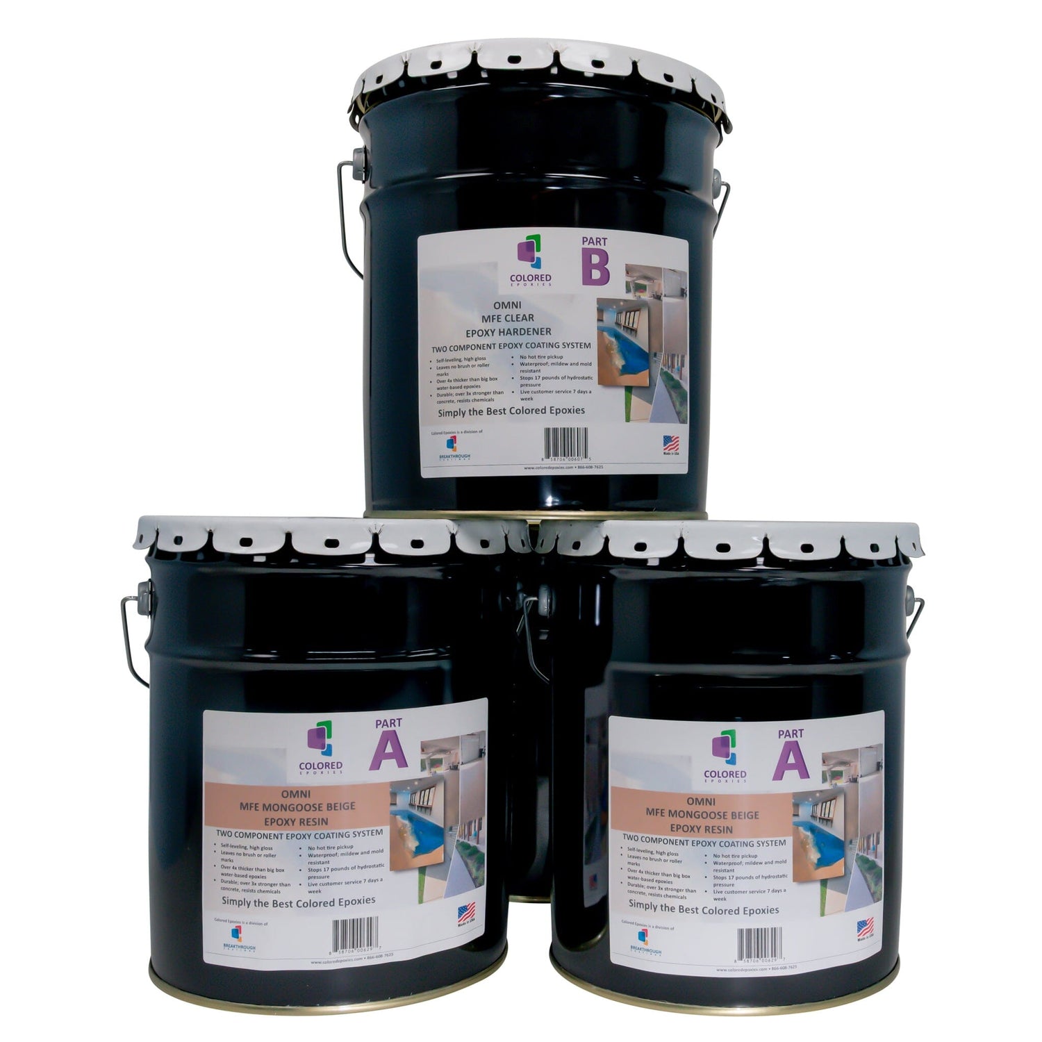 Colored Epoxies is a two component super flexible epoxy coating system (2:1 Mix Ratio of Two Resins to one Curative). This durable coating is flexible and abrasion resistant. Colored Epoxies is 100% Solids coating and is Zero VOC & VOHAP Free. Colored Epoxies is to be used in combination with our Clear Coat for Exterior Applications to protect the epoxy from yellowing from UV damage, chemicals, and oxidation. Colored Epoxies has superb performance in architectural applications. Trust in Colored Epoxies High Performance Architectural Coatings to protect your investments from UV degradation and damage from the environment. Our durable coatings provide abrasion resistance for long wear resistance and color retention.